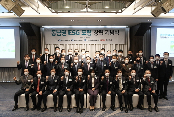 BNK금융그룹과 부산상공회의소(부산상의)가 울산상의, 경남상의와 함께 22일 오전 부산 파라다이스 호텔에서 ‘동남권 ESG 포럼’ 창립 기념식을 열었다고 밝혔다.