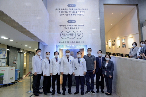 이후 약 1년간의 미션·비전 재수립 과정을 담은 경과보고 영상을 시청하고, 김상진 진료부원장의 미션, 비전, 핵심가치 설명이 진행되고 직원 대표 5인이 행동약속 선언을 했다. 행사는 본관 1층 벽에 설치된 현판 제막식과 기념사진 촬영을 끝으로 마무리됐다.