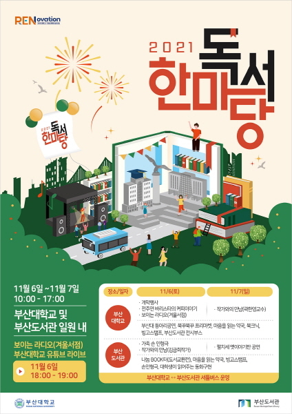 부산대학교는 내달 11월 6일부터 7일까지 ‘부산대와 부산도서관이 함께하는, 2021 독서한마당’ 행사를 개최한다고 25일 밝혔다.