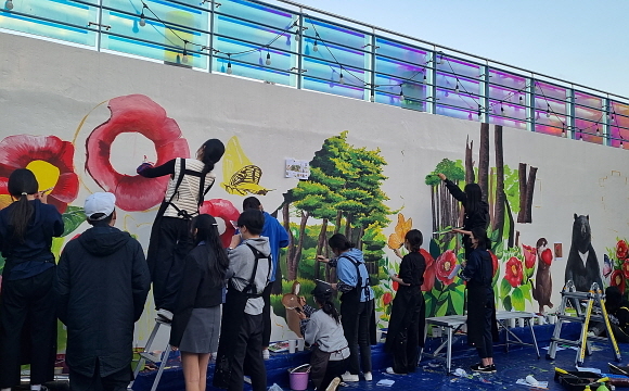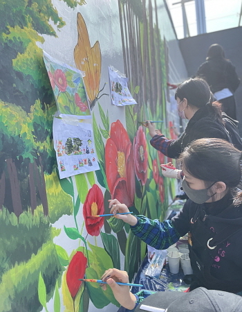 앞서 봉사 참여 학생들은 부산시민공원을 주제로 자연과 어울리는 벽화 디자인을 직접 공모해 꽃, 동물, 공원 전경 등 가족단위 방문객이 선호하는 시안을 선정했다. 이후 스케치, 조색, 채색 등을 진행했다.