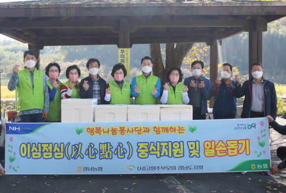 이날 일손돕기에는 김정규 경남농협 부본부장, 정대인 농협진주시지부장, 정의도 진주금곡농협 조합장, 고향주부모임 행복나눔봉사단, 대학생농촌인력지원단 등 약 30여 명과 농협 임직원이 참여했다.