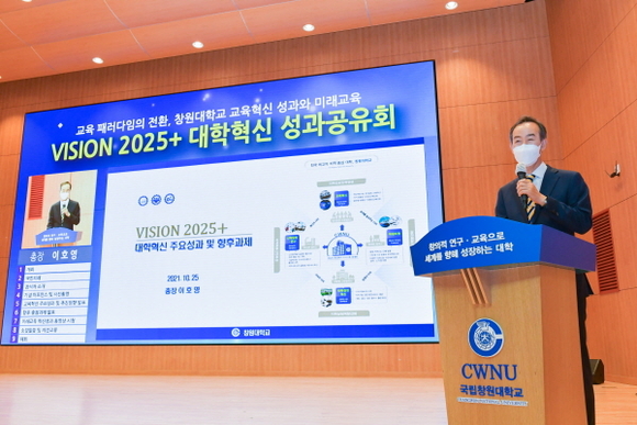 창원대학교는 25일 오후 글로벌평생학습관 대강당에서 ‘VISION 2025+ 대학혁신 성과공유회’, 중앙도서관에서 ‘미래교육 혁신공간 준공식’을 개최했다고 밝혔다.