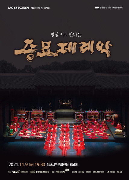 김해문화재단 김해서부문화센터는 11월 9일 오후 7시 30분 2021 SAC ON SCREEN을 통해 ‘종묘제례악’을 상영한다고 25일 밝혔다.