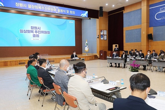 경남 창원시는 25일 시민홀에서 '창원시 일상회복 추진위원회'를 출범하고, 제1차 전체회의를 가졌다.