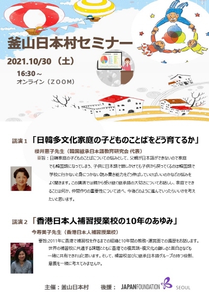 일본어융합학부 정기영 교수는 “아이들에 대한 교육은 물론이지만 보호자도 그 중요성을 이해할 필요가 있다고 생각해 온라인 세미나를 개최하게 됐다”며 “한일 다문화가정 보호자와 관심 있는 연구자에게 많은 도움이 될 것이다”고 전했다.