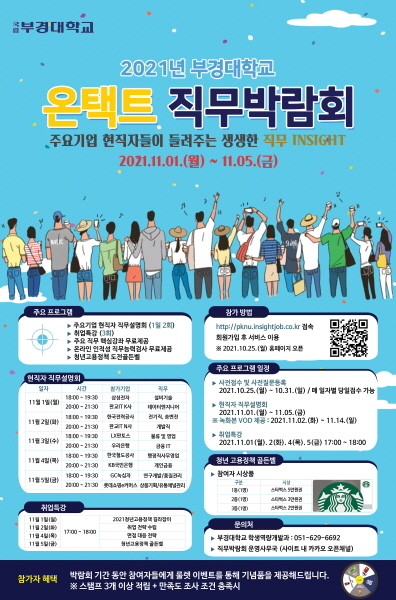 국립부경대학교가 졸업(예정)생과 부산지역 청년구직자 500여 명을 대상으로 내달 1일부터 5일간 ‘2021년 온택트 직무박람회’를 개최한다.