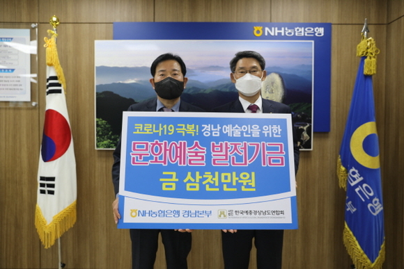 NH농협은행 경남영업본부는 27일 한국예총 경남연합회(이하 경남예총)에 경남 예술인을 위한 ‘문화예술 발전기금’ 3000만원을 전달했다고 밝혔다.
