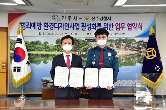 경남 진주시는 27일 진주경찰서와 시민 모두가 안전하고 행복한 생활환경을 조성하기 위해 '범죄예방 도시환경 디자인사업 활성화' 추진 업무협약을 체결했다.