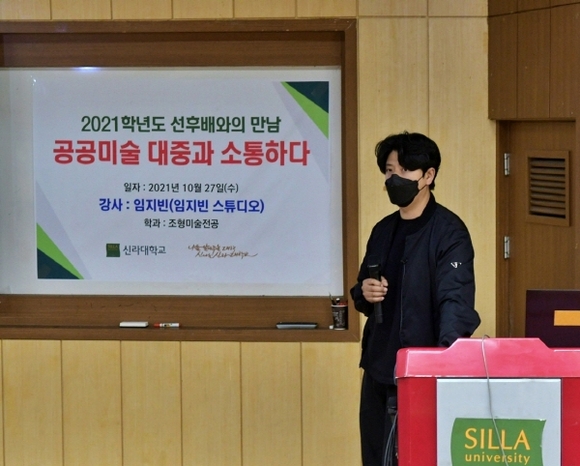 이번 프로젝트는 신라대 조소과(현 디자인·아트학부) 02학번인 임 작가가 작품을 통해 코로나19로 힘들어하는 후배들과 지역 주민에게 따뜻한 위로와 응원의 메시지를 전하고자 마련했다.