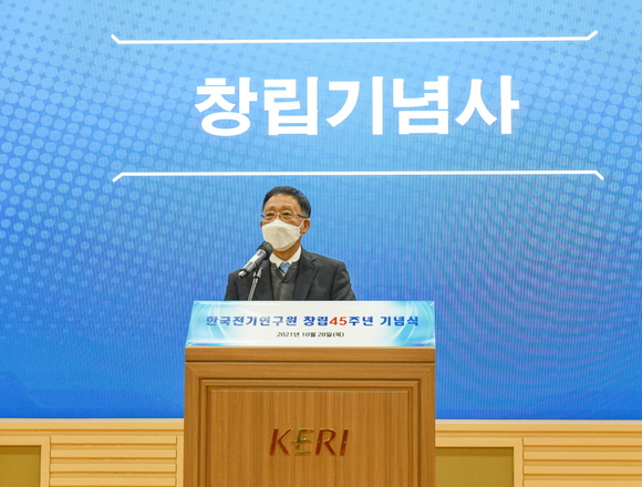 한국전기연구원(KERI)이 창립 45주년을 맞아 28일 전 임직원과 함께하는 온라인 창립기념식을 개최했다. 이번 행사는 지난 8월 취임한 제14대 명성호 원장 체제 이후 맞이한 첫 번째 창립기념식이었다.