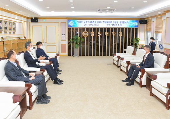 창원대학교는 허건영 국방기술품질원장이 대학을 방문, 대학본부에서 이호영 총장과 양 기관의 협력 강화 및 방산발전 선도 전문인력 양성 방안 등에 대한 간담회를 가졌다고 29일 밝혔다.
