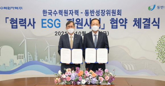 한국수력원자력(이하 한수원)이 29일 동반성장위원회와 서울 대한상공회의소에서 ‘협력사 ESG 지원사업 협약’을 체결했다.