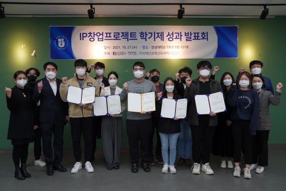경성대는 지난달 21일과 22일 개최된 한국지식재산연구학회에서 특허청장상(대상), 학회장상(최우수상/우수상) 등 5개상 수상, 디자인 등록출원 10건, 상표 등록출원 9건 등 지식재산권을 획득한 바 있다. 또 IP창업학기제 교육을 이수한 학생 중 3명이 협약기업에 조기 취업하기도 했다.