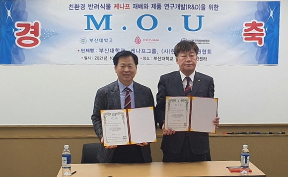 이번 업무 협약은 환경정화식물인 ‘케나프’를 활용한 제조사업과 가공사업 및 천연인슐린, 폴리페놀 식물성 단백질 연구 등에 적극 협력하고, 부산대 창의혁신휴먼센터와 케나프월드미션연합 간의 기술 개발 확대 및 홍보, 공동마케팅, 사업 교육과 신기술 개발 추진을 위해 체결됐다.