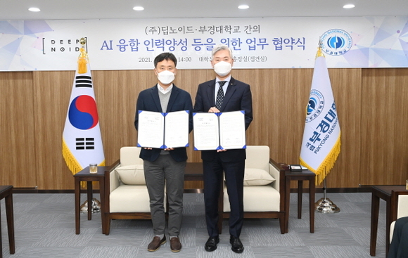 국립부경대학교와 ㈜딥노이드가 인공지능(AI) 융합 인력 양성과 지역 AI 산업 활성화를 위해 1일 업무협약을 체결했다.