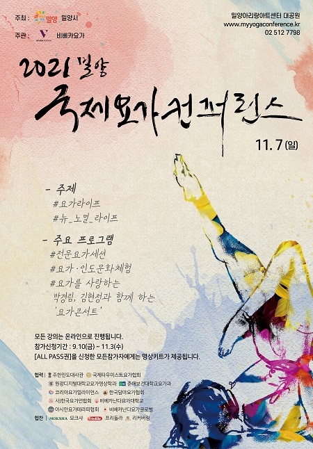 경남 밀양시가 오는 7일 '#요가라이프 #뉴노멀라이프 #회복탄력성'을 주제로 2021 밀양 국제 요가 콘퍼런스를 온‧오프라인으로 연다.