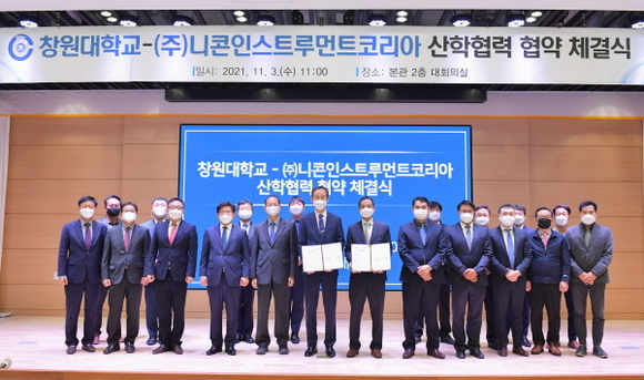 창원대학교는 3일 대학본부 2층 대회의실에서 ㈜니콘인스트루먼트코리아와 첨단장비 공동활용을 위해 공동실험실습관에 ‘니콘 산학협력관’을 지정·활용, 기업에서 졸업생 채용 후 다시 대학에 장비운영 인력 파견 등을 내용으로 한 산학협력 협약을 체결했다고 밝혔다.