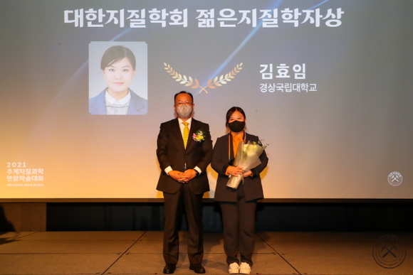 경상국립대학교(GNU) 자연과학대학 지질과학과 김효임 교수가 지난달 26일부터 28일까지 라마다프라자 제주호텔에서 개최된 ‘2021년 추계 지질과학 연합학술대회’에서 대한지질학회 젊은지질학자상을 수상했다.
