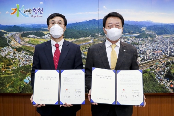경남 합천군과 ㈜지엘에프앤아이는 지난 3일 군청에서 문준희 군수, 박근열 대표를 비롯한 용역설계업체 관계자 등 10여 명이 참석한 가운데 '합천 옐로우 리버타운 조성사업'을 위한 투자이행 협약(MOA)을 체결했다.