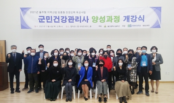 춘해보건대학교 평생교육원은 지난 4일 ‘2021년 울주형 지역산업 맞춤형 전문인력 육성사업’의 일환으로 ‘군민건강관리사 양성과정’ 개강식을 개최했다.