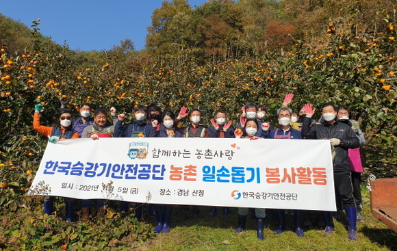 한국승강기안전공단은 지난 5일 경남 산청군 삼장면에서 감 따기 농촌 일손돕기 봉사활동을 실시했다.