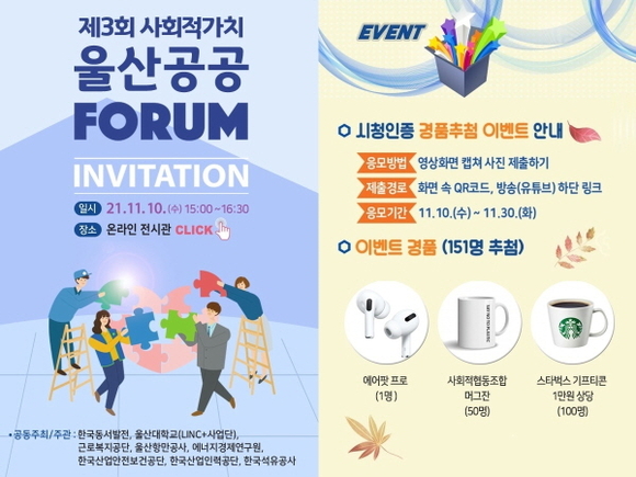 한국동서발전 등 울산 소재 8개 공공기관·대학이 지역사회 문제의 공동 해결을 위해 오는 10일 ‘제3회 사회적가치 울산공공포럼’을 개최한다.