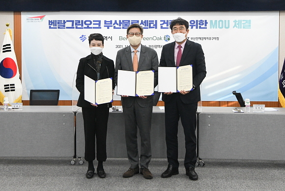 부산시와 부산진해경제자유구역청이 9일 오후 3시 시청에서 미국 부동산 전문 투자사 벤탈그린오크(BGO)와 ‘벤탈그린오크 부산 물류센터 건립 협약’을 체결했다고 밝혔다.
