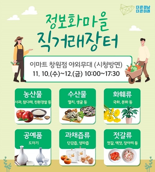 경남도는 10일부터 12일까지 이마트 창원점 야외무대에서 정보화마을 직거래장터를 연다고 9일 밝혔다.