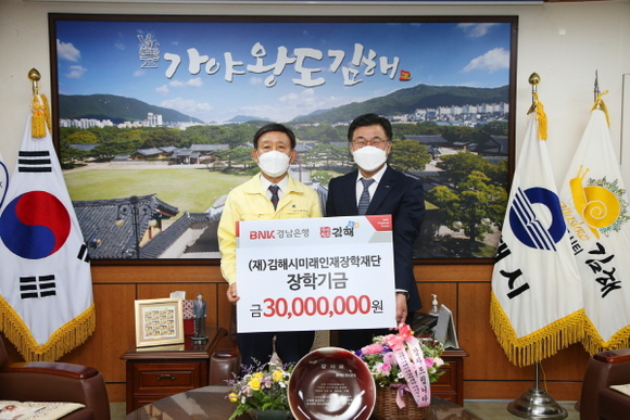 BNK경남은행이 10일 김해시미래인재장학재단에 장학기금 3000만원을 기탁했다.