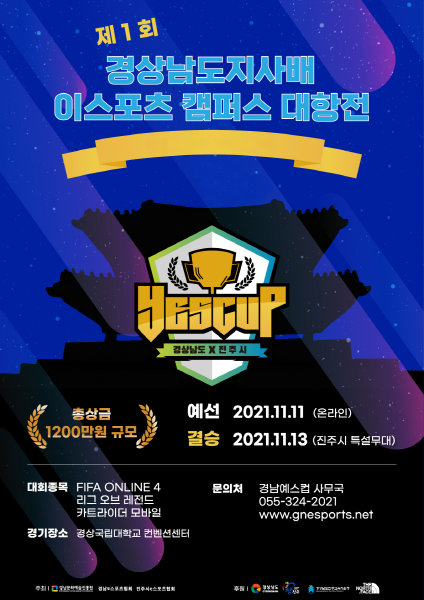 경상남도, 진주시, 경상남도 진주교육지원청이 후원하고 경남문화예술진흥원과 경남e스포츠협회가 주최하는 ‘제1회 경상남도지사배 e스포츠 캠퍼스 대항전’이 열린다.