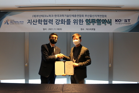 부산테크노파크가 지난 10일 한국과학기술단체총연합회 부산울산지역연합회(한국과총 부울연)와 ‘산업과학기술 산-학 협력체계 구축’ 협약을 체결했다고 11일 밝혔다.