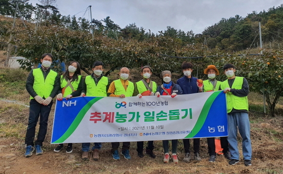 이번 일손 돕기에 참여한 농협자산관리회사 경남지사 및 농협은행 창원중앙금융센터 임직원은 창원시 동읍 금산리의 감 재배 농가에서 감 수확 및 주변 환경 정비 작업등을 도왔다.