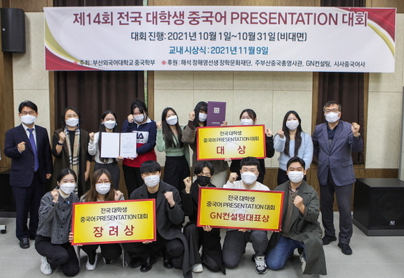 부산외국어대학교는 지난 9일 해석 정해영 선생 장학문화재단, 주부산중국총영사관, 지엔컨설팅코리아(, 시사중국어사’의 후원으로 진행한 ‘제14회 전국 대학생 중국어 프레젠테이션 대회’ 시상식을 개최했다고 12일 밝혔다.