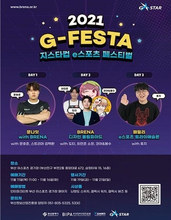 (재)부산정보산업진흥원과 부산시가 지스타조직위원회와 함께 부산e스포츠경기장(브레나)에서 오는 19일부터 21일까지 ‘2021 G 페스타’ 축제를 개최한다고 12일 밝혔다.