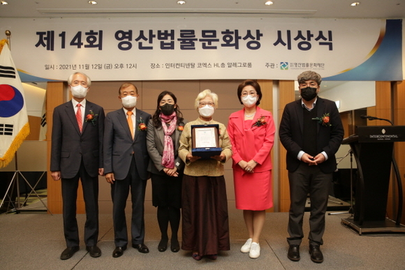 영산법률문화재단은 지난 12일 낮 12시 서울 강남구 삼성동 코엑스 인터컨티넨탈호텔 알레그로룸에서 제14회 영산법률문화상 시상식을 개최했다. 수상자로는 고 이홍훈 전 대법관이 선정됐으며 시상식은 인사말, (선정)심사보고, 시상, 수상소감, 축사, 축하연주 등 순서로 진행됐다.