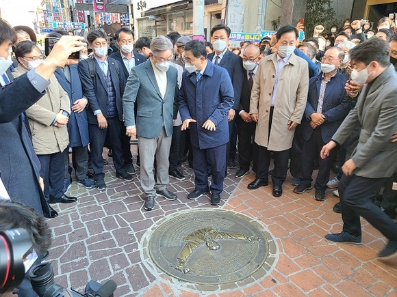 '매주 타는 민생버스(매타버스)'의 지역 순회 첫 일정으로 부산·울산·경남을 찾은 이재명 후보는 이날 허성무 시장과 함께 마산 3·15의거 발원지 기념관과 마산어시장을 연이어 방문하며 민생현장을 살폈다.