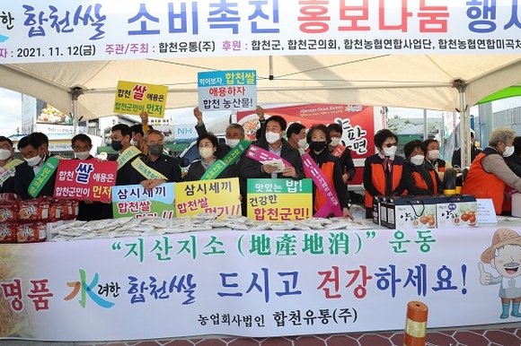 경남 합천군은 지난 12일 군의회와 농업기술센터, 농협중앙회 합천군지부, 합천유통(주), (사)한국여성농업인합천군연합회 합동으로 합천농협 하나로마트 입구에서 50여 명이 모여 水려한 합천 쌀 '영호진미' 소비 촉진을 위한 적극적인 홍보에 나섰다고 15일 밝혔다.