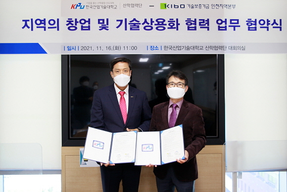 기술보증기금(기보)이 지역의 창업 지원과 기술 상용화 생태계 조성을 위해 16일 한국산업기술대학교 산학협력단과 업무제휴 협약을 체결했다고 밝혔다.