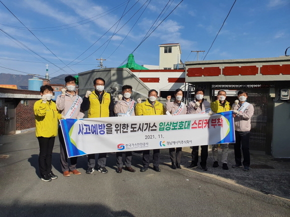 이날 행사에는 경남에너지 최연욱 안전본부장 및 해당 지역 안전관리담당자와 가스안전공사 본부 및 검사부장 등 10여 명이 참석, 반사시트 부착 설치 및 가스 안전 캠페인에 나섰다.