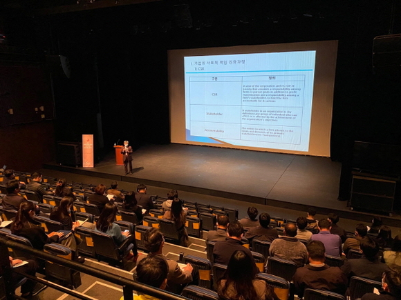 또 이번 재인증 기관 포상으로 저자 초청 강연의 기회를 얻었다. 이에 지난 16일 오후 5시, 김해문화의전당 누리홀에서 임직원 대상 독서콘서트가 열렸으며 ‘소비자가 주도하는 ESG모델’의 저자인 유창조 동국대학교 경영학과 교수가 강연을 펼쳤다.
