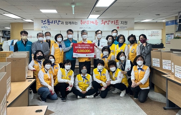한국마사회 부산연제지사는 지난 11일 대한적십자사 부산지사와 함께 '전통시장과 함께하는 취약계층 희망이음키트' 지원 행사를 가졌다.