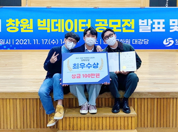 경남대학교 학생들이 지난 17일 창원시 의창구 소재 창원문화원에서 열린 ‘2021 창원시 빅데이터 공모전’에서 기획부문 최고상인 ‘최우수상’을 받았다.