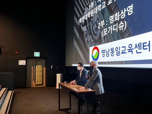 경남대학교 영남통일교육센터가 지난 17일 롯데시네마 프리미엄 경남대점에서 영화 ‘모가디슈’ 상영회를 개최했다.