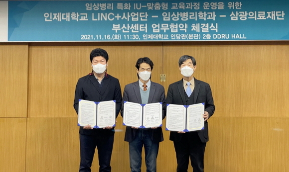 인제대학교 LINC+사업단, 임상병리학과, 삼광의료재단 부산센터는 지난 16일 인당관 대강당에서 현장 밀착형 임상병리 인재 양성을 위한 업무협약을 체결했다.