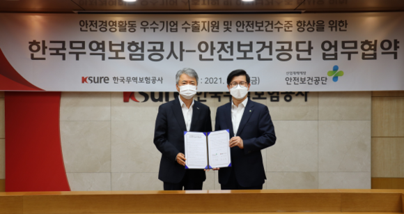 안전보건공단과 무역보험공사가 지난 19일 ‘안전경영활동 우수 기업 수출지원 및 안전보건 수준 향상을 위한 업무협약(MOU)’을 체결했다고 22일 밝혔다.