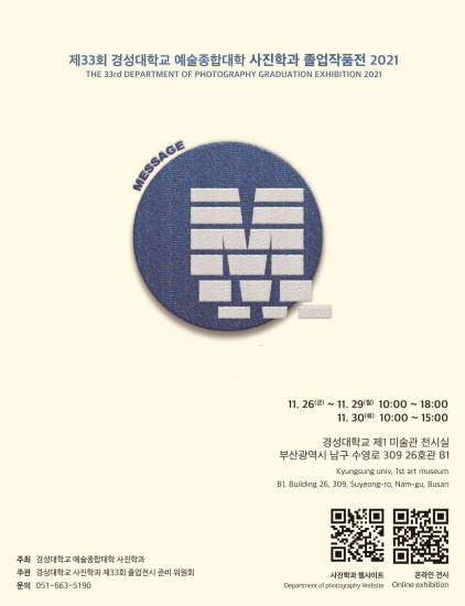 경성대학교 예술종합대학 사진학과는 제33회 졸업전시회 ‘MESSAGE’전을 오는 26일부터 30일까지 대학 제1미술관에서 개최한다고 22일 밝혔다.