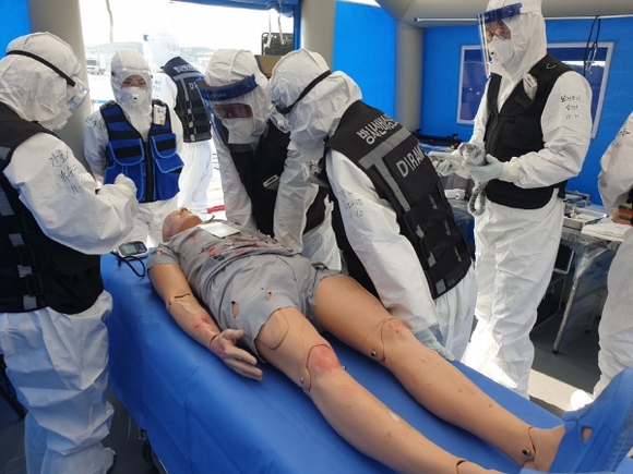 동남권원자력의학원 방사선비상진료센터가 지난 16일부터 18일까지 김해공항에서 진행된 ‘국가 화생방 대테러 종합훈련’에 참가해 방사능테러 대비 훈련을 실시했다.