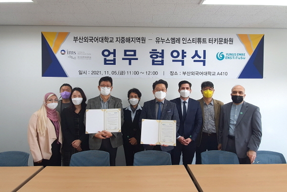 부산외국어대학교 지중해지역원은 지난 5일 주한터키 유누스 엠레 문화원(Yunus Emre Enstitusu)과 문화 학술 협력분야 양해각서(MOU)를 체결했다고 23일 밝혔다.