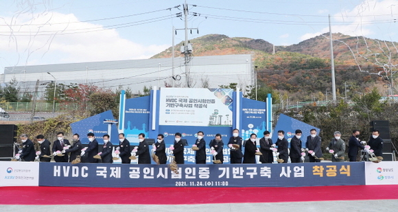 전력기기에 대한 국제공인 시험인증 기관인 한국전기연구원(이하 KERI)이 24일 창원본원에서 ‘HVDC 국제공인 시험인증 기반구축 사업 착공식’을 개최했다. 이날 행사에는 KERI 명성호 원장을 비롯해 경상남도 박종원 경제부지사, 창원시 허성무 시장, 산업부 신용민 전자전기과장 등 사업을 이끌어 가는 지자체 및 주요 유관기관, 기업체 관계자 50여 명이 참석했다.