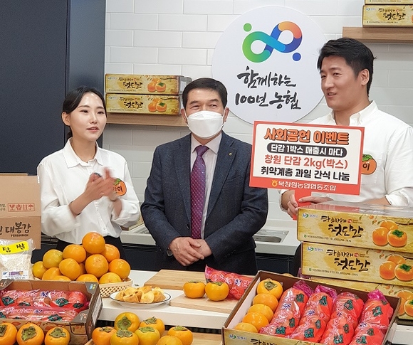 고객이 단감을 1박스 구입할 때마다 단감 1박스를 적립해 연말 지역 소외계층에 과일간식 나눔으로 기부되는데 금액은 판매수량에 따라 결정된다. 이날 준비한 500박스가 완판돼 단감 500박스(400만원)가 지역사회에 기부될 예정이다.